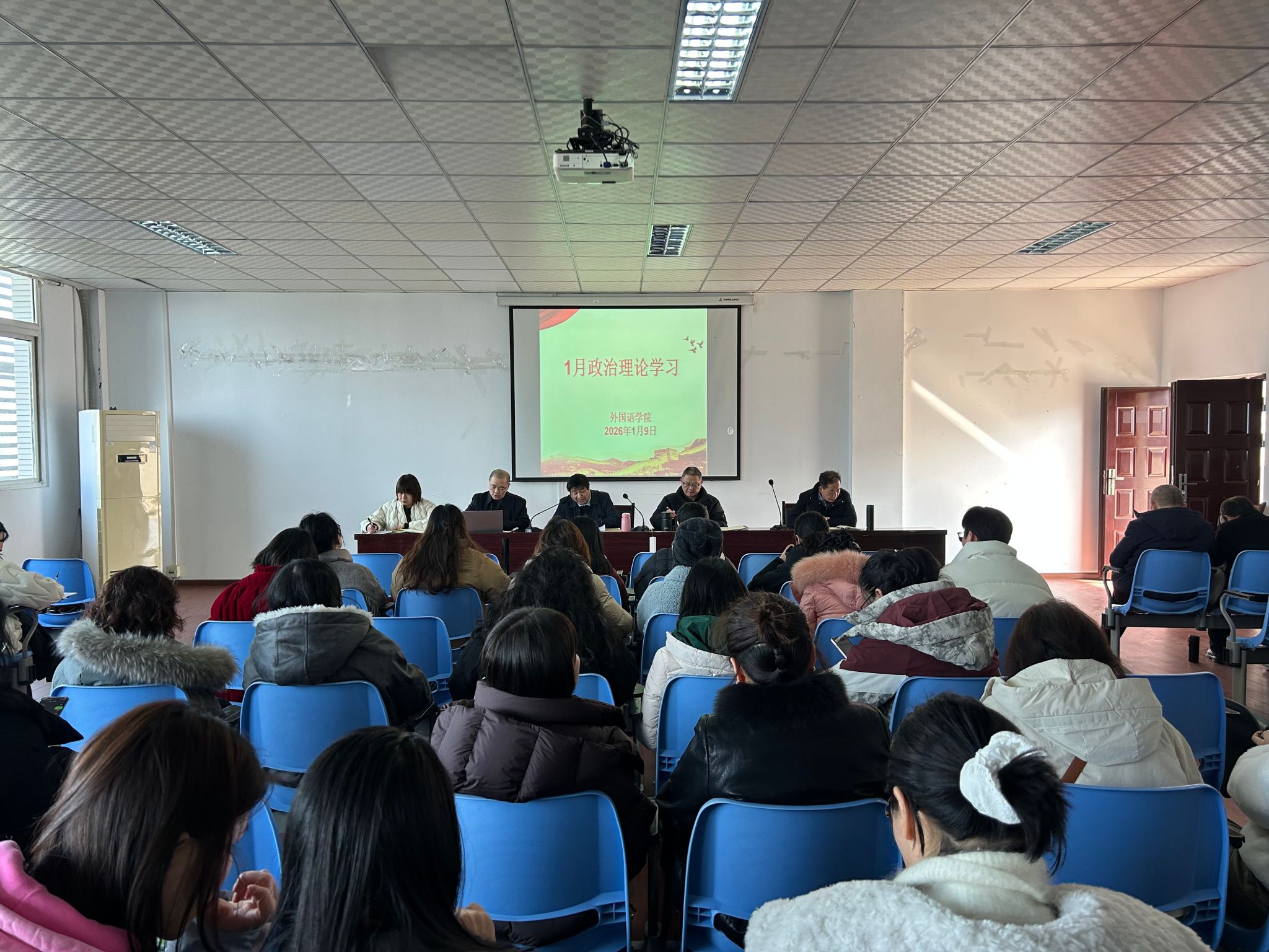 1月9日下午,外国语学院在明辨楼1-604组织开展政治理论学习会议,学院副书记、副院长孔云军主持会议并领学,全体教职工参加学习。
