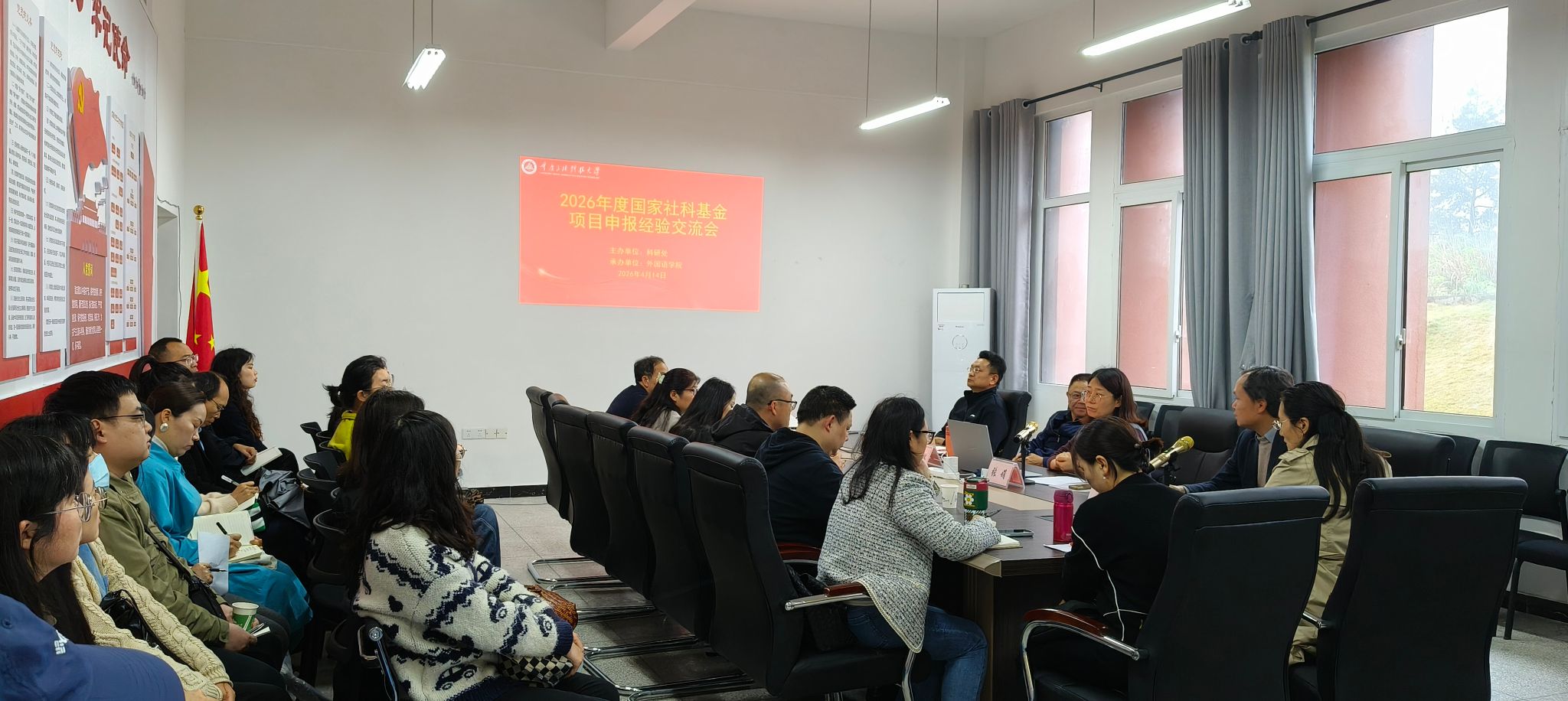 2026年4月14日14:40,由学校科研处主办、外国语学院承办的国家社会科学基金项目申报讲座在博学楼3-315会议室召开。会议由科研处副处长曾毅教授主持,学校文科学院部分教师参加。会上,获批国家基金项目的两位教授结合自身经历,分享了宝贵经验。