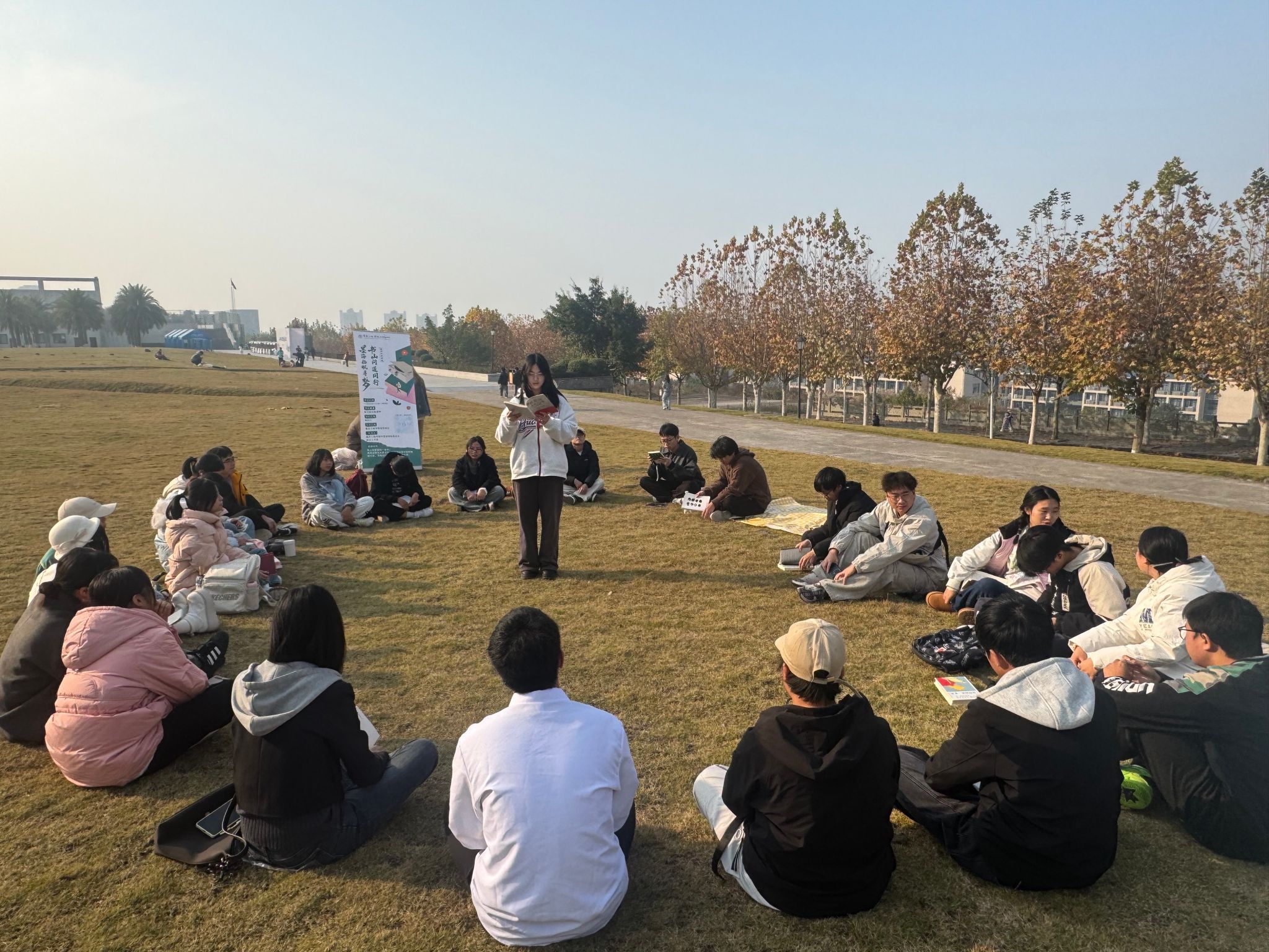 11月30日下午,外国语学院在图书馆对面草坪举办“读书点亮智慧”主题读书沙龙,吸引了20余名同学参加。