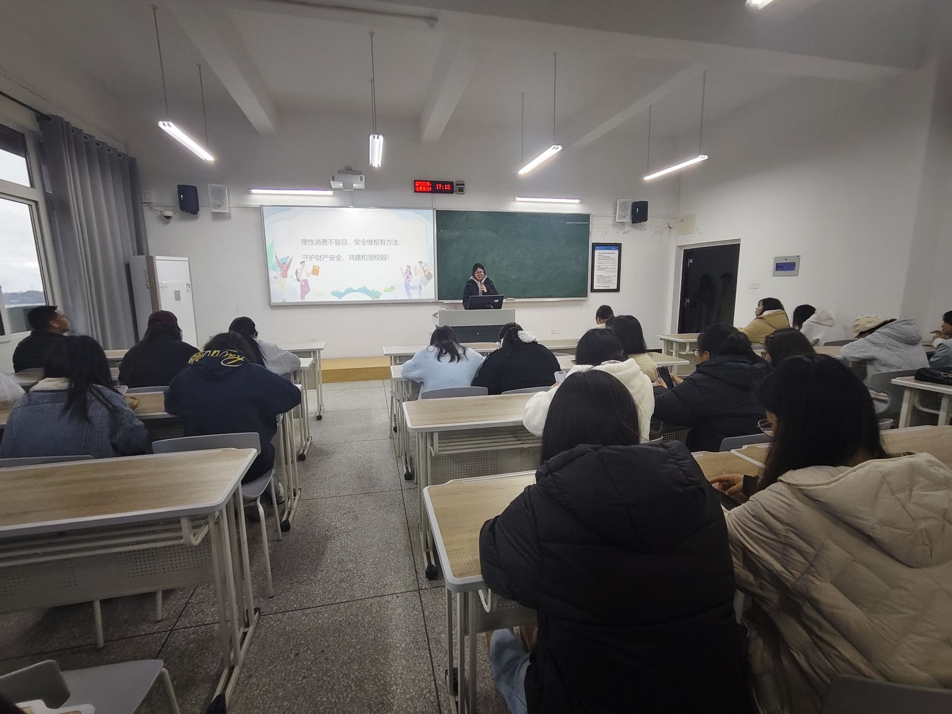 各年级辅导员结合学生生活实际,分析了当前大学生消费特点,通过真实案例解析了校园贷、网购诈骗、兼职陷阱等常见消费陷阱,传授了保护个人信息、理性辨识促销等风险规避技巧,普及了消费维权法律知识,指导学生在权益受损时有效保留证据、依法维权,倡导全体学生树立量入为出、绿色健康的科学消费观。