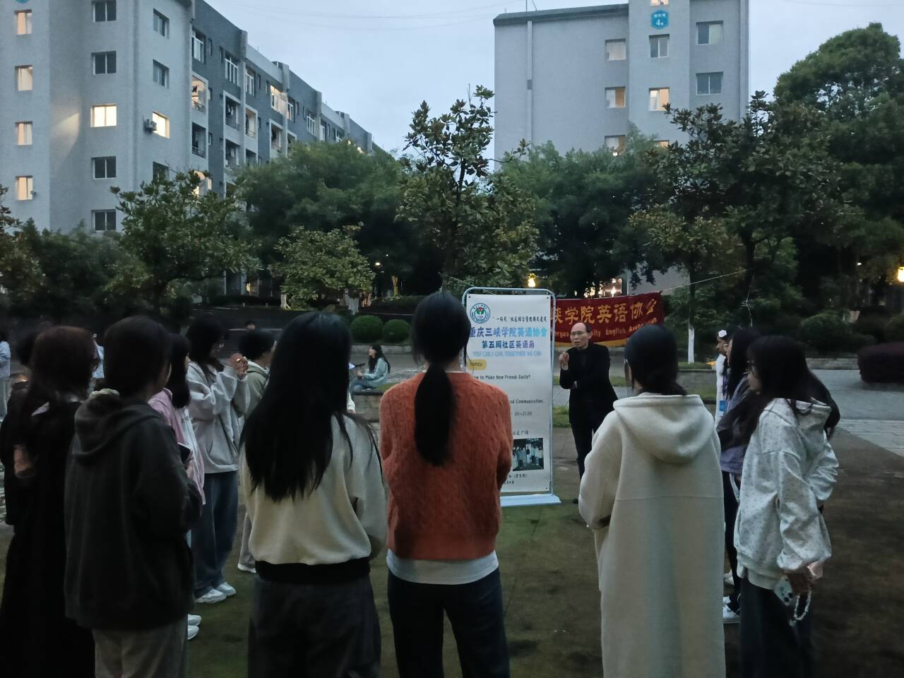 4月2日晚,我校英语协会在百安校区榕叶苑学生广场举办了本学期第五周英语角活动。外国语学院老师梁福江到现场指导。