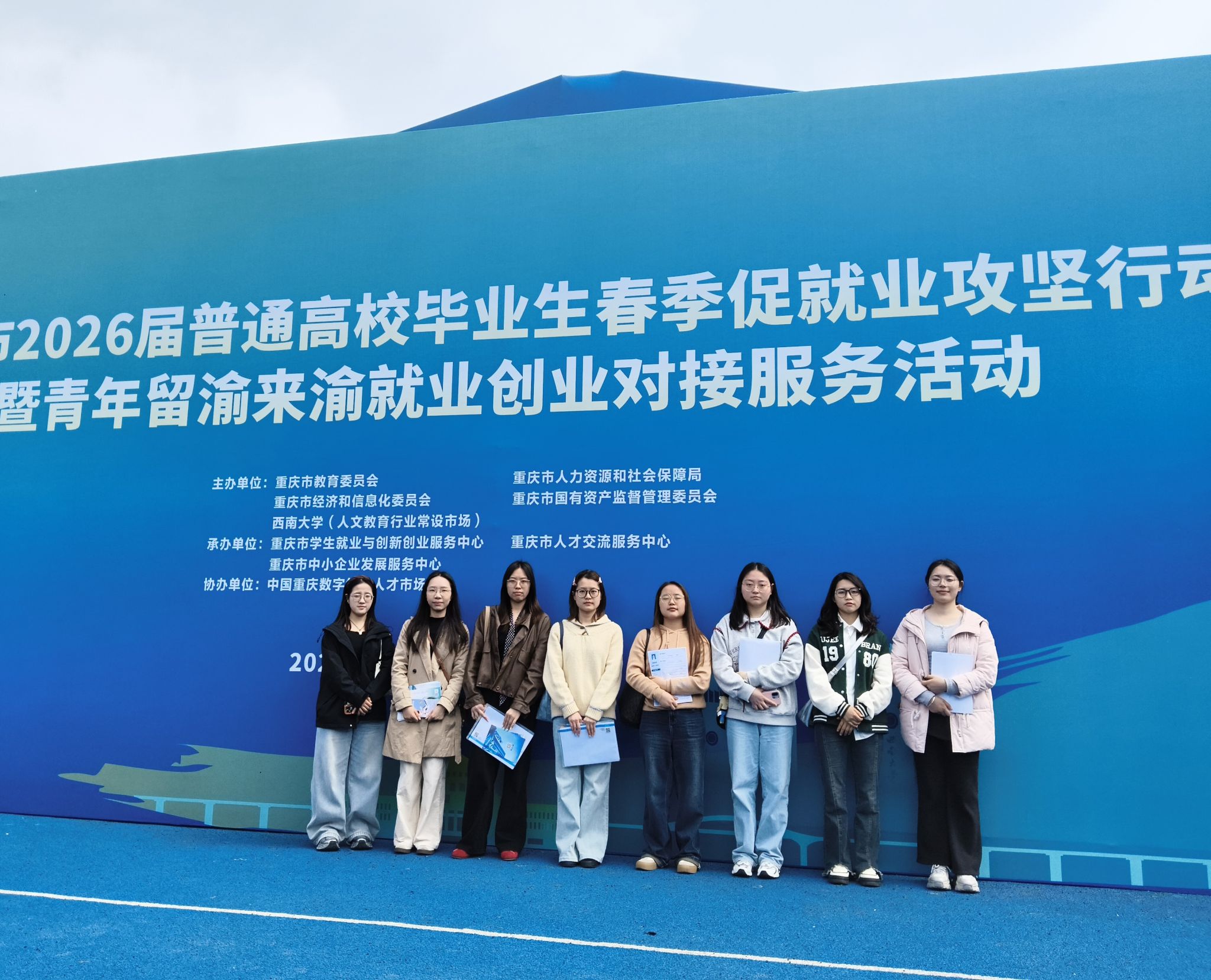 3月31日,重庆市2026届高校毕业生春季促就业攻坚行动暨青年留渝来渝就业创业对接服务活动在西南大学(北碚校区)举行。外国语学院组织2026届毕业生代表参加,辅导员陈可昕带队。