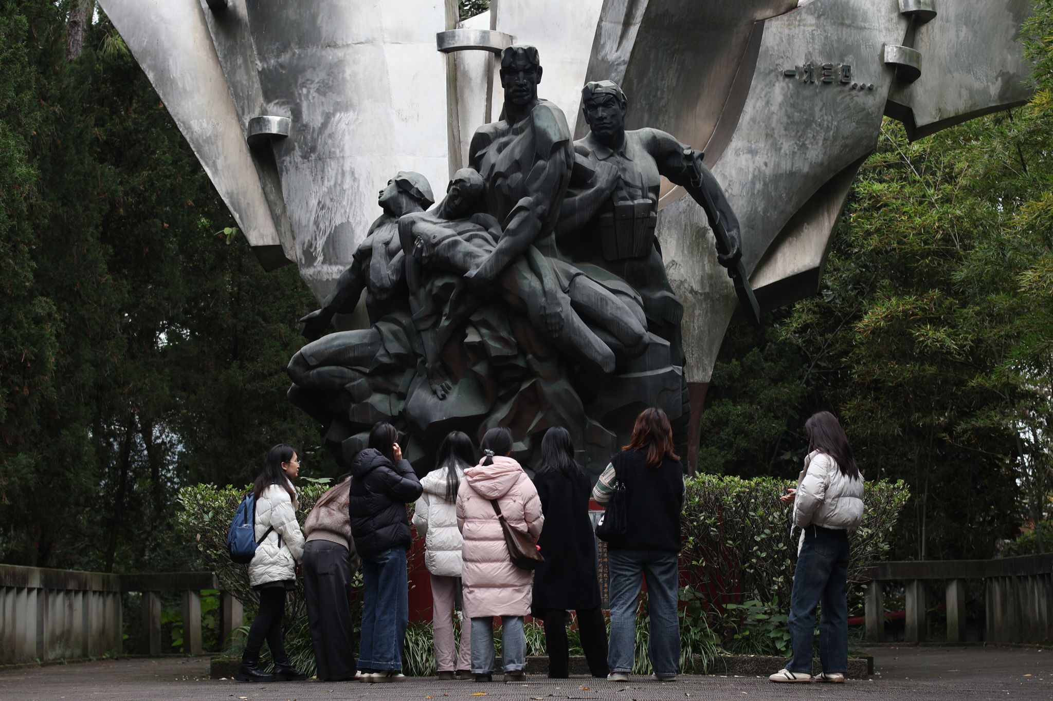 在庄严肃穆的烈士纪念碑前,同学们整齐列队、静默肃立,集体默哀致敬,深切缅怀为民族解放与人民幸福英勇献身的革命先烈。随后,大家跟随讲解员瞻仰烈士墓碑,聆听革命事迹,了解万州地区的红色历程,重温那段波澜壮阔的斗争历史。