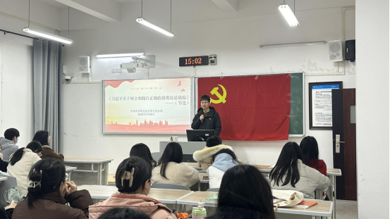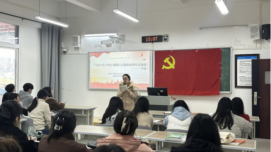在集中研讨环节,全体学生党员围绕学习内容开展交流,深刻领悟“功成不必在我”的精神境界与“功成必定有我”的历史担当,把握正确政绩观的科学内涵与实践路径。